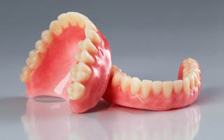 Dentures are used to replace missing teeth that can be taken out and put back into your mouth. There are generally two types of dentures available, complete dentures and partial dentures. The type that is needed can be determined by your dentist. Typically complete dentures are used to replace all teeth and partial dentures are used when you still have some of your natural teeth in place.