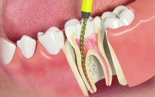 The root canal procedure then begins with the administration of a local anesthetic. Next, the doctor removes the damaged or infected nerve tissue and fills the infected root with an antibiotic to treat any remaining infection. The tooth root is then packed with filling material. Finally, the tooth is capped with a crown to protect it, because of weakness and instability resulting from damage caused by the infection.